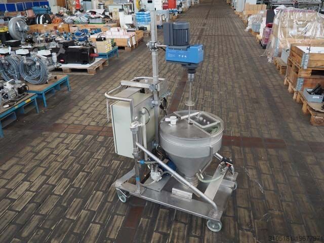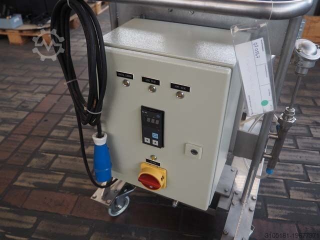 Б/у мобильный/передвижной двухстенный жидкостный смеситель из нержавеющей стали с насосом для жидкостей и двумя термостатическими нагревателями