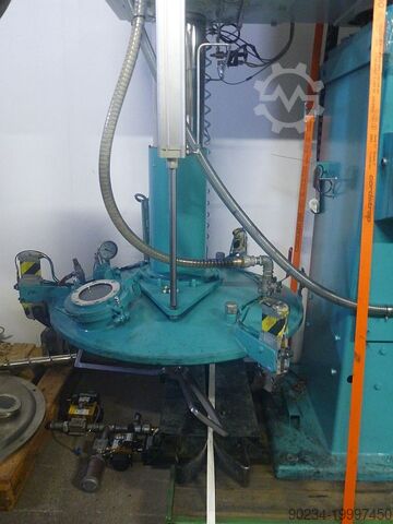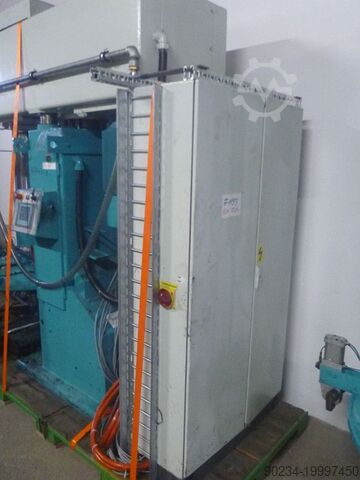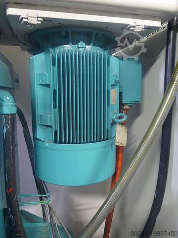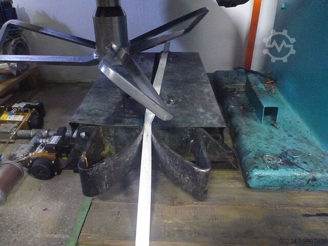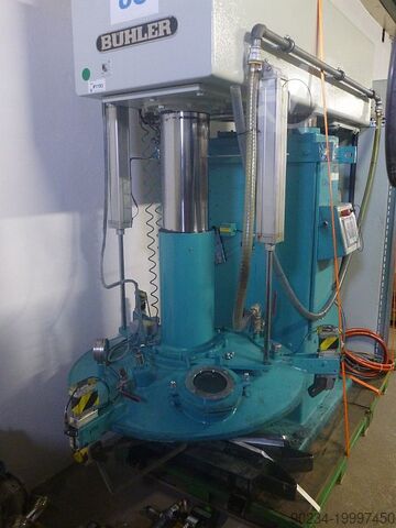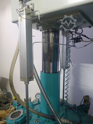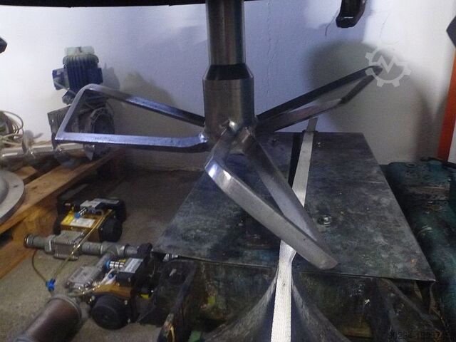 Б/у смеситель Buhler (Швейцария), модель SPM-50-HT, с бабочкообразной/трилистной мешалкой для работы под вакуумом. Все контактные детали выполнены из коррозионно-стойкой стали. Длина вала мешалки около 1750 мм; оборудован мешалкой типа 'бабочка' с тремя лопастями, внешний диаметр 1040 мм. Верхняя крышка оснащена двумя пневматическими актуаторами, адаптирована под смесительные чаны диаметром 1100 мм. Крышка поднимается на высоту до 500 мм. Мешалка приводится в движение ременным приводом от электродвигателя 45 кВт, 1470 об/мин, 380/660 В, 50 Гц. Смеситель поднимается гидравлически на высоту до 90 см. Оснащен локальной панелью управления Siemens с сенсорным экраном и электрическим шкафом. Также есть гидравлический пост для ёмкости. Рабочее давление в ёмкости до 0,3 бар. Ранее смеситель использовался для производства красок. Смесительный чан в комплект не входит.