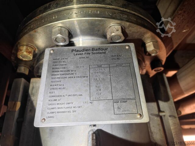 Объем в л: 50; Расчетное давление в барах: 6,6/FV; Расчетная температура в °C: -30/200 °C; Сплав: футеровка из хастеллоя; Вес в кг: 325