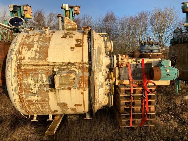 Б/у вертикальный стеклоэмалированный реактор Pfaudler BE5000. Примерная вместимость 5 000 литров. Внутреннее расчетное давление 6,6 бар/полный вакуум при -29 до 200°C. Внешняя рубашка из мягкой стали рассчитана на 6,6 бар/полный вакуум при -29 до 200°C. Аппарат с приваренными выпуклыми верхней и нижней крышками. Включает верхнее четырехлопастное мешалку CBR Turbine, приводимую в действие двигателем 10,5 кВт, 415 В, 292-1460 об/мин, 3/50. Установка смонтирована на проушинах.
