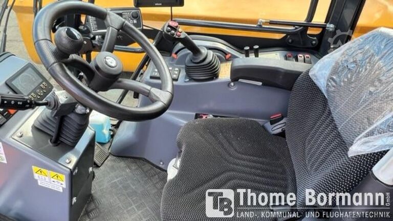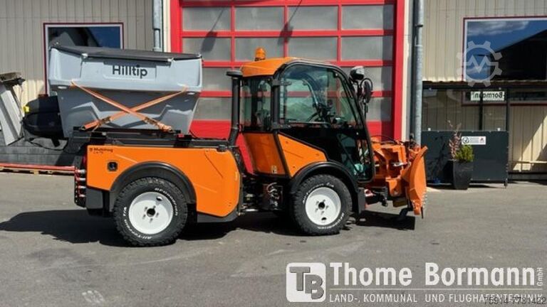 Operating hours: 544, Engine type: TIER 4 final, First registered: November 8, 2021_____Mulithog CX 75 including attachmentsSnow plow and spreader - winter service unitBasic equipment:- 75 HP (55.4 KW)- 2.2 l Deutz 3-cylinder Stage 5 diesel engine- Spacious driver's cab with heating and air conditioning- High-back air-suspended driver's seat with 3-point seatbelt- Air conditioning - Top-mounted road lighting - Temperature-sensitive hydraulic cooling fan with variable speed - Permanent four-wheel drive with positive drive lock 3-point front linkage including mechanical adjustment of boom rotation and float position - 2-axis joystick and miniature lever to control hydraulic functions 3500 kg (7,716 lbs) gross vehicle weight- Manually adjustable, heated rearview mirrors. Rotating beacon - Mechanical top link - Mechanically tilting rear. Optional equipment: - Standard Orange RAL2011 - Mechanical front PTO 1000 rpm 1 3/8" 6 splines - Adjustable reversible fan - Adjustable load-sensing hydraulic pump front 0-100 L/M, rear 0-50 L/M (max. combined flow 120 L/M) - 2 x DW valves front (3 x DW front total) and 1 x DW valve rear (1 x DW rear) - 2 x DW hand lever valve block - required for hydraulic rear tilt & hydraulic side balance in the front linkage - Hydraulic rear tilt - Hydraulic side balance with float function in the front linkage - Mechanically tilting cab - Cab heating & air conditioning (combined) - Standard windscreen - Set of 2 x standard cab doors - 2 LED work lights front - LED flashing lights (Set of 4) - Option for higher torque in the drive - Permanent 4-wheel drive - BFG ALL TERRAIN tires LT225/75/16 - Machine width 1235 mm, Storage location: 54595 Prüm