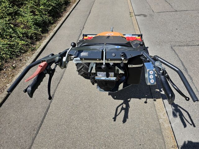 ПРИВОД: гидростатический, бесступенчатый привод, направление движения и скорость регулируются электрогидравлически с помощью кулисного переключателя на рулевой рейке со встроенным бесступенчатым регулятором тонкой подачи.