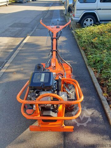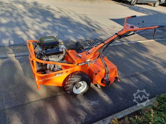 Профессиональный одноосный культиватор с 2-цилиндровым бензиновым двигателем Briggs & Stratton мощностью 16 л.с., бесступенчатым гидроприводом хода, гидравлическим приводом вала культиватора с регулировкой скорости, регулируемой по высоте рулевой штангой, 197 часов работы по счетчику.
