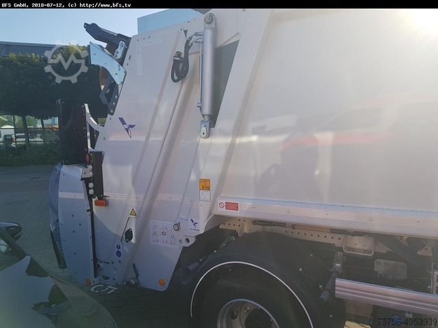 Differential lock, rear axle stabilizer, radio Bluetooth, storage box, daytime running lights, lane keeping assistant, hill start assistant, Canter safety package including floor mats, driver airbag, transmission auxiliary drive, 400NM, with flange connection, lane keeping assistant, rear view mirror, extended mirror holder, long version, valve extension, driver comfort suspension seat, Olympus rear loader Mini 7 with 7m³ effective body volume, Olympus Mini tipping device for containers EN 840-1/2/3 (manual comb tipping device for 60-1100 l, folding arms), approx. 500 kg lifting capacity, folding slide for bulky waste (loading edge: bottom approx. 1000 mm, top approx. 1400 mm)