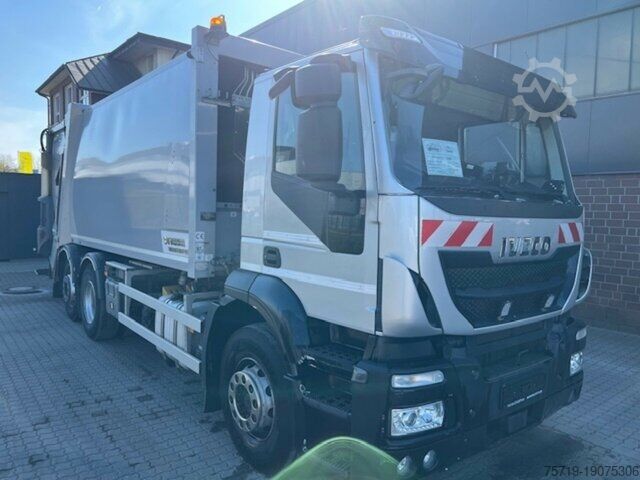 Faun Type 524 VarioPRess II Zöller Type Delta 2301 for 120/240/1,100 liter tanks, trailing steering axle, lane departure warning system. Non-binding offer. Subject to change and prior sale. Sale excludes any warranty. All information is provided without guarantee.