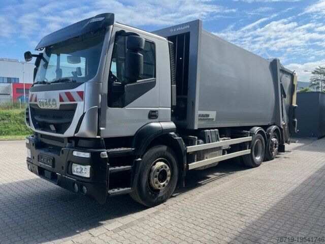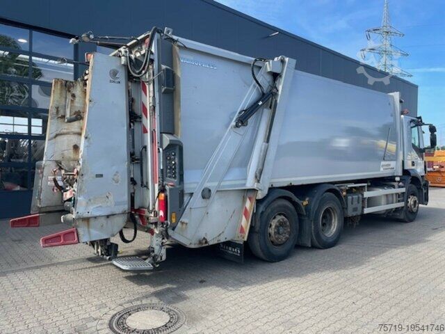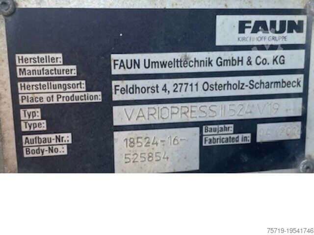 Faun Type 524 VarioPRess II Zöller Type Delta 2301 for 120/240/1,100 liter tanks, trailing steering axle, lane departure warning system. Non-binding offer. Subject to change and prior sale. Sale excludes any warranty. All information is provided without guarantee.