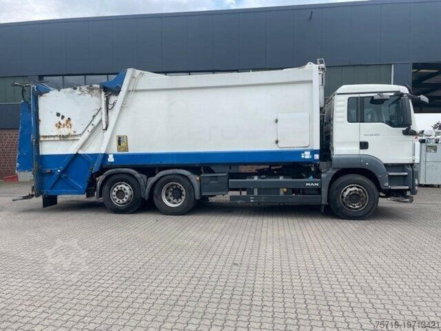 Zöller 2301 combination lifter for 120/240/1100 L containers, Schörling 3RII 24 SE/O SHF00090RR109640, trailing steering axle. Non-binding offer – subject to change and prior sale. Sale is made excluding any warranty. All information provided without guarantee!