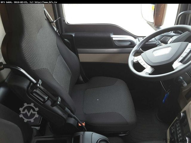 Left-hand drive, differential lock, trailing axle steered/liftable, stop brake for waste collection vehicle, 3-seater, ASR, disc brakes, central locking, radio, rotating beacons, lifting roof, cornering light, camshaft output 650Nm with flange, all rear-view mirrors heated and electric, electronic braking system, front sunblind, reversing lock - running board switch, decorative elements, HS Olympus 21 m³ suitable for household waste and bulky waste, with Terberg Omni DEKA automatic comb tipping system for 60-1100 l containers. Comfort switching, central lubrication system, reversing monitoring system,