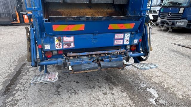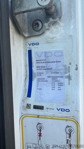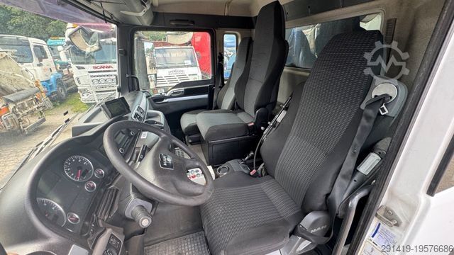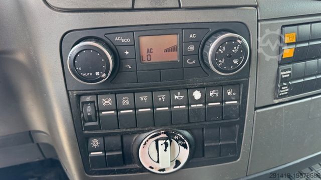 Exhaust pipe raised on the right side, exterior mirrors and wide-angle mirrors electrically adjustable and heated, wide-angle mirror with electric maneuvering aid, battery disconnect switch (mechanical), curb mirror on right side electrically adjustable and heated, CB radio roof antenna, rear axle differential lock, cab: electrically-hydraulically tilting mechanism, cab: with 2 rear wall windows, tinted, cab: air suspension, comfort driver's seat, air-suspended and heated, with lumbar support, alternator 28 V / 110 A, heavy-duty roll stabilization, automatic climate control, heated air dryer, center seat, steered trailing axle NOL-08, liftable, power take-off at flywheel side, revolving warning beacon (2), external sun visor, cab power sockets 12V and 24V, control module for external data exchange, front axle VOK-09 offset, additional high/low beam and fog lights with cornering function