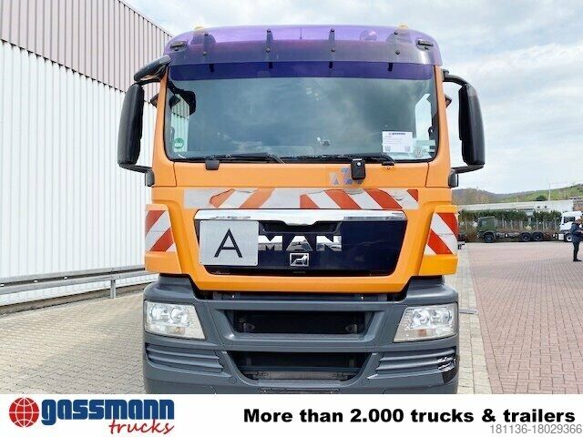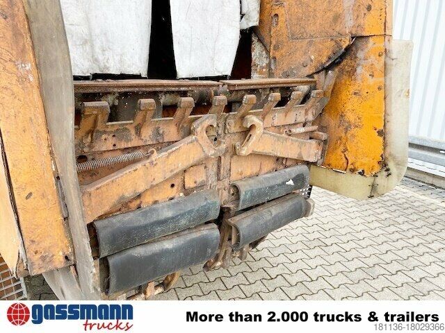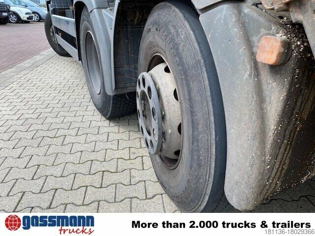 Vehicle location: Bovenden, main depot, 1x comfort seat, seat heating, electric mirrors, heated mirrors, electric window left, electric window right, sun visor, cruise control, air horn, ABS (anti-lock braking system), constant throttle, power take-off, AS-Tronic automatic transmission, differential lock, fog lights, rotating beacon, storage box, leaf-air suspension, low-noise G1, last axle hydraulically steered, side aluminium underride guard, roof hatch, green environmental sticker