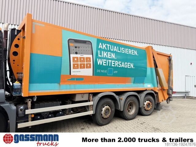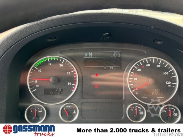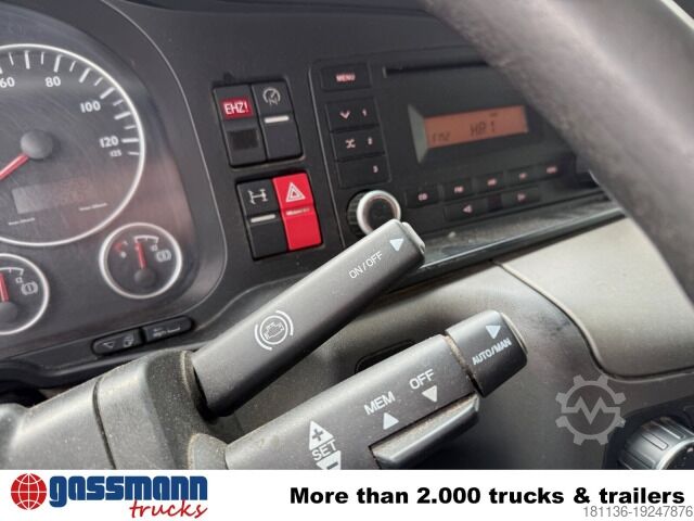 Vehicle location: Bovenden, office building, 1x comfort seat, dual bench seat, electric mirrors, heated mirrors, electric window left, electric window right, air conditioning, sun visor, cruise control, ABS (anti-lock braking system), traction control (ASR), PTO, high-mounted exhaust, automatic, differential lock, fog lights, beacon light, leaf-air suspension, second axle steered in the front, last axle hydraulically steered, side aluminum underrun protection, roof hatch, green emissions sticker