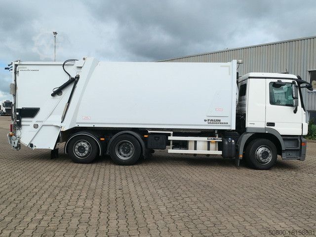 Тип кузова для сбора мусора FAUN: VARIOPRESS II 524 V19, тормозная система Telligent ABS/ASR, блокировка заднего дифференциала, круиз-контроль, помощь при трогании на подъеме, помощь при трогании с места, люк на крыше, камера заднего вида, многофункциональное рулевое колесо, кондиционер, электропривод. Стеклоподъемник водительской и пассажирской дверей, подогрев наружных зеркал и электропривод пассажирской стороны. регулируемое, комфортное сиденье водителя с подвеской, среднее сиденье с ремнем безопасности, центральная система смазки, противотуманные фары (галогенные), 2 проблесковых маячка, пневматическая подвеска с устройством подъема и опускания HA, самоуправляемая подъемная ось, автомобиль можно наклеить и/или с рекламной надписью
