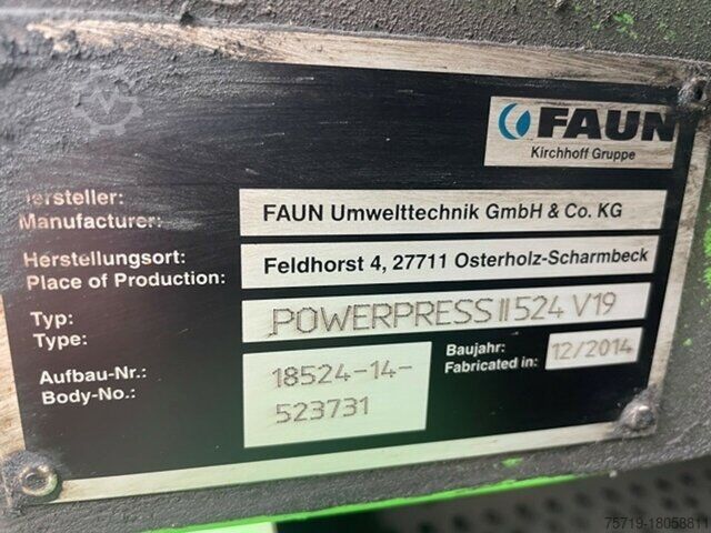 Faun Powerpress II 524 V 19, trailing steering axle, non-binding offer - subject to alterations and prior sale - sold without warranty - all information without guarantee!