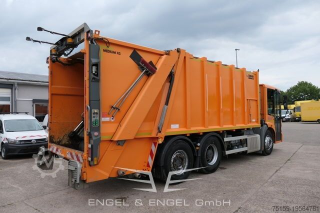 The Mercedes-Benz 2635 NGE-L62N Econic offers a robust and reliable solution for municipal waste collection. Powered by a high-performance engine delivering 260 kW (354 HP) and equipped with an automatic transmission, this pre-owned refuse truck ensures efficient operation. First registered in July 2016, with a mileage of 178,000 km, it remains in good condition. The striking orange exterior and Zöller Medium body make this vehicle the ideal choice for use in urban environments.