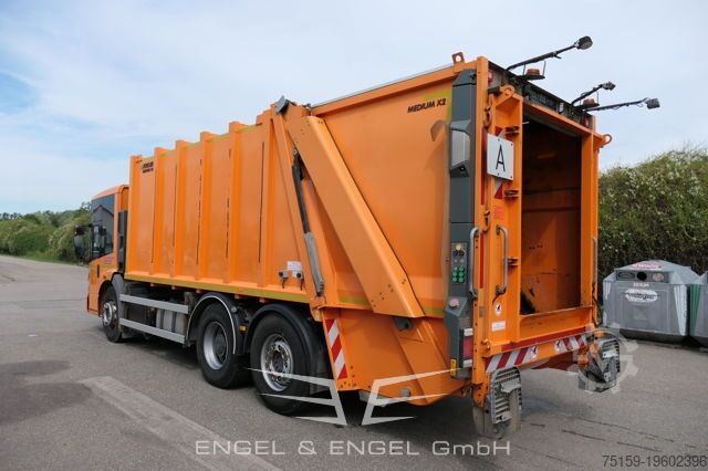 The Mercedes-Benz 2635 NGE-L62N Econic with Zöller Medium superstructure is a refuse collection vehicle particularly suited for businesses and exporters. This used commercial vehicle was first registered in September 2016 and has a mileage of 191,625 km. Equipped with an automatic transmission and delivering 260 kW (354 hp), this refuse truck ensures reliable performance in daily waste collection operations.