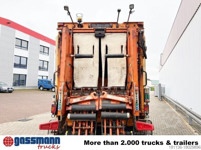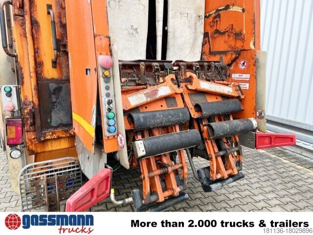 Wheelbase: 5100 mm Body: Refuse collection vehicle with body 27cbm Zöller Meduim XL & Zöller Schüttung 2301 8t front axle, rear axle H7 disk wheel 300 13t, Telligent trailing axle hydraulically steered, 7.5t leading axle hydraulically steered and unloadable, Telligent brake system ABS and ASR, Disc brakes on front and rear axles, Additional rear/trailing axle stabilizer, Front underride guard, Start-off aid, Parameterizable special module (PSM), Mercedes PowerShift 2, Pre-installation for toll collection, Reversing camera, Distributor cockpit, On-board diagnostics 2, Pollen filter, Tank capacity: 300l, rear engine output torque 600Nm, center seat, C-Trace identification system. ACCESSORIES WITHOUT WARRANTY, subject to alterations, prior sale and errors excepted!