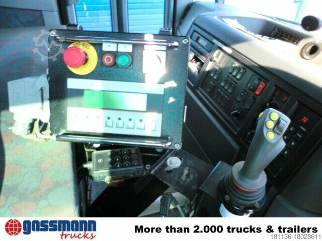 Vehicle location: Bovenden, license plate house, 1x air seat, double bench seat, electric window right, air conditioning, cruise control, ABS (anti-lock braking system), constant throttle, raised exhaust, automatic, lifting+lowering, fog lights, work lights, rotating beacon, air-suspended, low-noise G1, last axle forced steering, yellow environmental badge