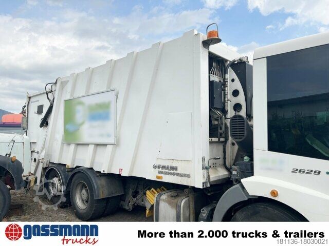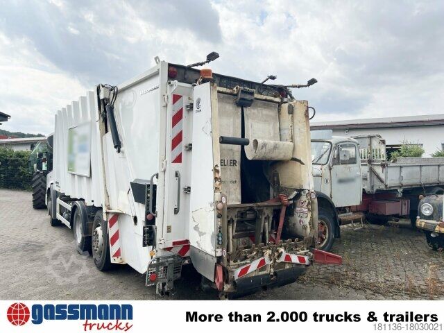 Wheelbase: 3900 mm Body: Waste collection body FAUN Variopress 522 & Zöller bulk system 2301 EEV engine, front axle with air suspension, 7.5 t front axle, rear axle H7 13 t disk wheel 300, axle load measuring device, Telligent trailing axle hydraulically steered, ABS, stop brake, Disc brake on front and rear axle, Front underride guard, Additional stabilizer rear/trailing axle, Lifting/lowering device, Start-off aid, Parameterizable special module (PSM), Communication interface (KOM), Pre-fitting for toll collection, On-board diagnostics 2, Tank capacity: 200l, radiator guard at the bottom, Allison automatic transmission 3000 P, engine brake can be activated/deactivated with constat throttle, power take-off automatic transmission H-speed flange.