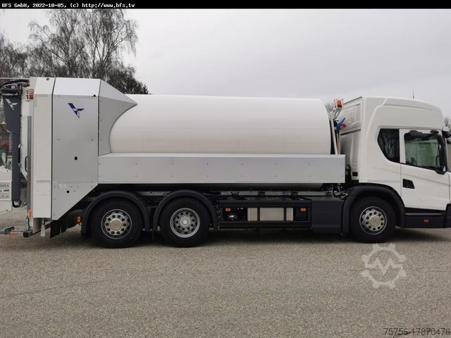 Sun visor, manoeuvring light at the entrance, 2x rotating beacons on the driver's cab, differential lock, comfort seat with air suspension, rear view camera, emergency brake assistant AEB, lane change warning, DAB radio, infotainment system with 7?? touch display, 4-seater drum V2A 1.4301 with 4 mm wall thickness, liquid-tight (therefore suitable for organic waste), two-speed conveyor screw, sandwich construction noise-reduced, lubrication system, OmniDEKA chute, 4-wheel MGB with flat lid and sliding lid, 2-wheel MGB according to EN 840/2,