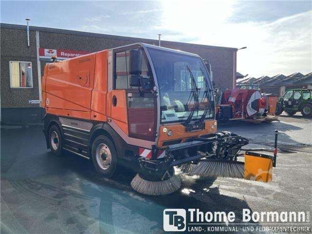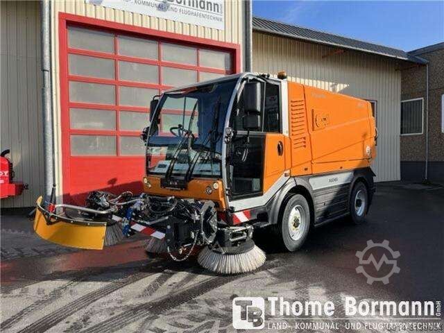 Operating hours: 1995, First registered: March 6, 2023_____Basic equipment CityCat 5006 Driver's cab: Comfortable, soundproofed cab with hydraulic bearings. Windshield made of heat-insulating, curved, low-reflection safety glass. 2 sliding windows in each door. Multi-stage heating fan. Sun visor. Windshield wiper with washer. Air-suspended driver's seat and passenger seat, both individually adjustable. Angle and height-adjustable steering column. Clearly arranged operating and monitoring instruments with a 7" color display. Visual and acoustic warning system for temperature and fluid level monitoring. Visual diagnostic system with intuitive design. Steering: Hydrostatic four-wheel steering with hydraulic servo assistance. Axles: Rear axle as steering drive axle with differential. Front axle with coil springs and shock absorbers. Hydraulics: The latest electronic control concept enables consumption- and noise-optimized control of the diesel engine for a hydrostatic drive across the entire speed range, without any loss of performance. Brakes: Hydraulic dual-circuit braking system with hydraulic servo support. Disc brakes front and rear. Hydraulic spring-loaded handbrake on the rear axle. 4 brake calipers at the front and 2 at the rear. Sweeping material pickup: Suction pickup principle, with a drawn, stainless-steel suction nozzle in front of the axle, hydraulically movable laterally by 400 mm together with the side brush. Continuously adjustable high-performance suction fan. Sweeping hopper: Container volume 5.6 m³, hydraulically tiltable and closable. Dumping height 930 mm. Dumping height (high tip) 1550 mm (optional). Dumping width 1700 mm. Dumping angle 51°. Water system: Water tank approx. 880 l. One water pump for water nozzles. Sweeping brush: 2 sweeping brushes left and right, Ø 900 mm. Speed adjustment continuously 0-150 rpm with collision protection. Special equipment: - Standard color RAL 2011 orange - Hydraulic suction pipe flap - Leaf grid lifting device for raising and lowering the leaf grid in the KGB using a hydraulic hand pump - Easyclean, quick cleaning system for cleaning the KGB side walls, blower, recuperation and leaf grid - 3rd front brush in reinforced design with linear displacement, tilt adjustment in both directions Directions, contact pressure regulation, greater range, larger sweeping area - Leaf suction hose mounted on the side, length 3.5 m, ø 160 mm, can be mounted on both sides - Fully integrated air conditioning, CFC-free - Wide-angle mirror and main mirror, heated and electrically adjustable - Additional side brush mirror on the right - Rear view camera and suction mouth camera - Cruise control improves working ergonomics, increases performance - Deluxe ISRI driver's seat with headrest, weight adjustment via control valve. - Rotating LED beacon on the cabin. With elastic bracket mounted on the cabin, can be folded down when obstacles are encountered - Rotating LED beacon on the rear of the KGB. With elastic bracket, can be folded down when obstacles are encountered - Work lights, left & right brushes, LED headlights for suction mouth, LED - Joystick exchange for the front side brush allows the joysticks for the front side brush to be exchanged - Water connection with spray nozzle
