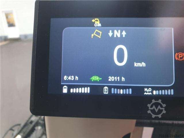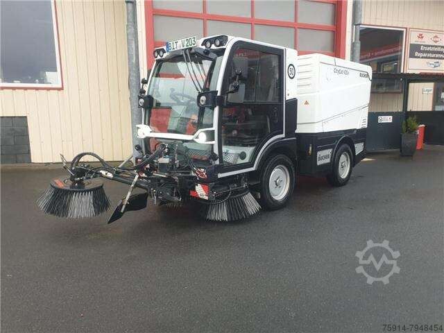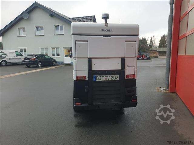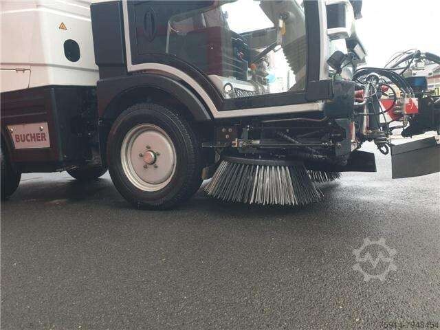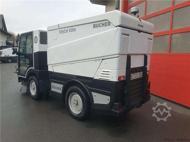 Tires (front): 215/75 R16, Tires (rear): 215/75 R16, Operating hours: 2774, Battery: Li-ion 63 kWh, Width: 1300, First registered: November 2, 2021, Charger: Integrated 22 kW, self-propelled_____Basic equipment of the fully electric CityCat V20e: Cab: Comfortable, suspended, soundproofed aluminum cab. Windshield made of heat-insulating, curved, low-reflection safety glass. Two sliding windows in each door. Multi-stage heater fan, sun visors, windshield wiper with washer. Individually adjustable, suspended driver's seat with headrest and 3-point safety belt. Angle- and height-adjustable steering column. Chassis: Two-part ladder frame chassis with "C" profile construction. Independent wheel suspension via shock absorbers and coil springs on the front axle and leaf spring suspension with shock absorbers on the rear axle. Axles and steering: Electrically driven front axle with self-locking differential (Torsen differential). Articulated steering with load-sensing steering hydraulics. Working hydraulics: Electrically driven hydraulic unit with low-noise gear pumps for steering, auxiliary functions, and front and side brush drive. Brakes: Hydraulic servo dual-circuit braking system with disc brakes on the front and rear axles. Parking brake (spring-loaded brake) acting on the front axle. Drive system: Working speed 0-15 km/h Travel speed 0-50 km/h* Gradeability up to 30% Electric drive output 88 kW Electric fan 8.5 kW Electro-hydraulic unit 12 kW HV battery: Battery type Li-ion Battery capacity 63 kWh Nominal voltage 335 volts Operating time up to 10 hours Charging system: Integrated charger 22 kW Type 2 charging plug Charging time 2 to 3 hours Steering: Hydrostatic articulated steering (right-hand drive), with load-sensing control Hydraulics: Hydraulic unit with low-noise gear pumps for fan, steering, auxiliary functions, and front and side brush drive On-board voltage: 12 V electrics, 95 Ah battery Hydraulic servo dual-circuit braking system with disc brakes on the front axle and disc brakes on the rear axle, spring-loaded brake (parking brake) and handbrake valve acting on the front axle. Tires: 4 wheels with 215/75 R16C M+S. Dimensions: Length 4200 mm Width 1300 mm Height 1999 mm Wheelbase 1900 mm Track width 1090 mm Sweeping width 2100 mm Sweeping width with 3rd brush 2700 mm Special equipment: - Lithium-Ion NMC battery, 63kWh, 335V - RAL 9016 white - Suction hose, 4m long (incl. suction pipe), diameter 120mm, with Storz couplings, with hydraulic closing flap - Third front disc brush - Brush diameter. 800mm, with front arm, swivels left and right with hydraulic tilt adjustment - Hydraulic tilt adjustment of both side brushes - Side adjustment of both side brushes, stepless hydraulic adjustment of both brushes individually - Easy clean quick cleaning system for cleaning the KGB side walls, recuperation and leaf grille - Hydraulic side brush pressure regulation of both side brushes with side brush individual lifting, combined - Radio DAB+ with CD MP3, Bluetooth, microphone - Heated exterior mirrors - Broom sp
