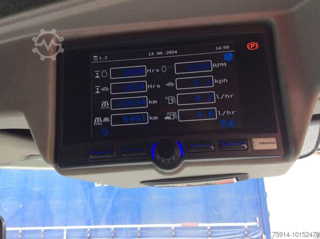 Operating hours: 3656, first registered: March 22, 2016, self-propelled_____Equipment: - Right-hand drive - All-wheel steering (turning circle diameter 3760 mm) - Coarse dirt flap - Poly/steel brushes (instead of standard) - Suction nozzle with castors (instead of standard) - Mounting plate: preparation for 3rd brush - Low water level indicator - Adjustable water valves on the front brushes - Deluxe driver's seat, heated with lumbar support - Radio extension with Bluetooth (hands-free phone) - Blind spot mirror - Heated rear view mirror left/right - Additional 99 dB (A) TÜV approval - Rear view camera system with integrated 7.0" color monitor - RKL, foldable, yellow LED (instead of standard) - High work lights, Storage location: 54595 Prüm