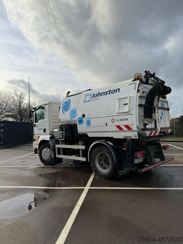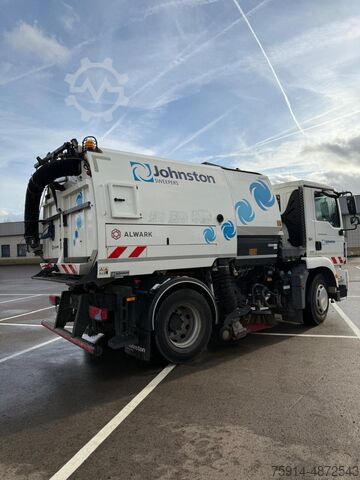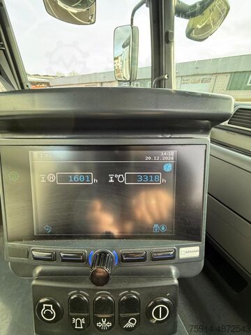 Operating hours: 1613, first registered: June 23, 2016, self-propelled_____Standard equipment: Fan unit - fan drive hydraulically via the transmission-independent PTO on the chassis (semi-hydrostatic drive) - Hydraulic fan drive - 50 l hydraulic oil tank - Engine compartment lined with sound-insulating material - Fan exhaust air duct upwards through the hopper front section - Hydraulic pump, single sweepings hopper - Sweepings hopper (with tailgate and sieve) and water tank made of 1.4003 chrome steel - Engine compartment paneling made of mild steel - Sweepings hopper gross volume 6.5 m³ - Sweepings hopper floor made of chrome-alloyed stainless steel, 1.4301 - Sweepings hopper tilt angle approx. 55 degrees - Dirt chute made of 1.4003 chrome steel - Inspection hatch right and left - Dirty water drain 4", A-coupling - Air duct sieve, manually foldable - 2 rotating beacons at the rear of the KGB - Air shut-off on the suction hose, pneumatically operated - Multi-stage safety support, pneumatically operated - Marker lights at the rear of the container, side marker lights - Integrated water tank - Preparation for rear suction hose boom or mounted on the roof - Side marker lightsSweeping material pickup - Sweeping material pickup, wear-resistant coated - Rough pickup by tilting the suction mouth - Suction hose diameter 250 mm - Pushed disc brush - Hydraulically driven steel disc brush - Pulled steel disc brush, diameter 500 mm - Continuously variable speed control for disc brush - Two robust pivoting trailing wheels - Automatic lifting of the sweeping units when reversing - Work lights for sweeping unit Roller brush - Pulled roller brush suspension - Brush length 1,300 mm, brush diameter 406 mm with plastic trim (depending on the chassis) - Hydraulically driven roller brush - Throw limiter apron for Roller brush unit water system - Water tank capacity approx. 1,554 l - Water tank made of chrome steel, 1.4003 with coating - Water level indicator in the driver's cab - Water filling device, Storz C (2"), right - Manual water filling device, right and left - Water pump, hydraulically driven - Automatic water stop when the sweeping units are raised - Spray water connection, 3/4", rear right - Water blow-out system - Electric water valves in the driver's cab - 2-nozzle low-pressure front instrument panel and control panel - Bucher instrument panel, including 7" color display - Ergonomic control unit, mounted on the driver's door, equipped with the main functions - Display includes the following functions: water level indicator, operating hours, and rear axle load - Warning and indicator lights for rear axle load - Control and monitoring unit for regulating the brush contact pressure (broom relief), stepless speed control of the disc brushes - Electric valves for the water system, operated in the driver's cab. - Operation The dirt container functions can be controlled via a cable remote control from the driver's cab, but also from outside. - Operation of the air guide sieve, operation at the rear right of the vehicle - Overload indicator for rear axle load, warning lamp in the display (option