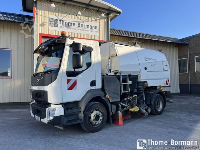 Operating hours: 1106, First registered: February 24, 2023_____Double-sided dirt collection structure with hydrostatic drive and hydraulic. Additional drive with gearbox HGB2 (V50h/V65h)Special equipment:- Right-hand traffic- Volvo FL250 Road Sweeper - Overload indicator with air suspension on the rear axle - Coated suction nozzle, suction pipe and reinforced baffle plate, rubberized- Dirt container with 2000l water capacity- Air guide sieve in the dirt container - Vibrating device for air guide sieve - pneumatically operated- Chain curtain in the dirt container, in front of the air guide sieve- Hydrant coupling type A, Stortz 2 1/2 inch- Mounting frame on the tailgate for attaching additional equipment- Additional spray nozzles on the back of the suction mouth- Autolock system - Pneumatic locking system prevents the sweeping units from sinking if the chassis loses air- Powascrub - Contact pressure regulation, increased contact pressure for roller brushes- Powasave - Contact pressure regulation for the disc brush, with pressure gauge- Adjustment of the brush inclination of the disc brush via joystick, double-sided - Additional low-pressure spray bar in front of the roller brush - Simultaneous sweeping on both sides - Varicap - infinitely variable suction mouth opening - Variabrush - disc brush can be extended and retracted continuously for one-sided dirt collection - Continuously variable speed control of the roller brush - Disc brush - 710mm diameter, steel trim - Roller brush diam. 406 mm with one-piece plastic trim - Powaboom - central boom, Ø200mm - Double bracket for central boom - Easiclean for easier cleaning of the dirt container inside - Flushing device for cleaning the valve - Side high-pressure nozzle, one-sided - for intensive cleaning in front of the disc brush - Supawash Option 3 - high-pressure washing system (100 bar / 30 L/min) with hand lance and hose reel (15 m hose), nozzle bar on the roller brush and on the suction mouth - Dirty water drain strainer - with graduated perforation, attached to the tailgate, enables more efficient drainage of the dirt area - Low-pressure washing hose with spray nozzle - Cruise control - for hydrostatic drive, depending on the chassis - One camera for rear area monitoring, displayed on JVM screen - White LED work lights in the engine compartment - Two LED rotating beacons, orange, at the rear - Two white LED work lights, mounted at the top of the rear - Three white LED work lights (both sides) - outline lights on the rear - container painted in a standard RAL color, paint color of dirt container RAL 9010 - central lubrication system for sweeper body on both sides - make Beka-Max - contour marking on the container on the side and rear - premium water system. Manual water valves included in the driver's cab - broom and shovel holder - illuminated arrow LP 15 - marking film red/white, storage location: TRIWO Automotiv Test