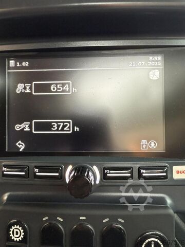 Control elements: Main control panel mounted in the center of the cab with JVM for displaying information on a wide range of sweeper functions plus download capability for recorded data. The JVM screen can also display images from up to four cameras. A separate control console with a hand rest for operating the main sweeping functions is mounted on the door side.