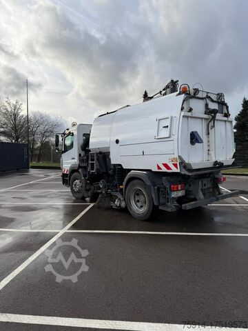 Operating hours: 5366, First registered: February 23, 2018_____Carrier vehicle: DB Atego 1324 #WDB96752620163901 Equipment: - Color: white - Rubberized and wear-resistant suction shaft - Pneumatic vibrating screens, air-driven cleaning system - Rear baffle plate - Stainless steel chain curtain - Multifunctional module for tailgate closure - High-performance suction nozzle wheels and bearings for standard Maxigap or Varigap suction nozzles - Contact pressure control for the Powasave gutter brush - Gutter brush, 710 mmØ (only V651 and V801) - One-piece sweeper roller - Autoloc - Locking of the sweeping units - Rotatilt gutter brush tilt adjustment on the right - Variabrush positioning system for the gutter brush - Additional spray bar in front of the sweeper roller - Powascrub contact pressure control Central brush/roller brush - Continuously variable speed adjustment for the roller brush - Powaboom - 200mm hand-held suction hose mounted on top, hydraulically height-adjustable - Double hand-held suction hose storage facility - Supawash 3 - High-pressure washing system with spray boom - Side high-pressure nozzle for the side brush (in conjunction with Supawash 3) on the right. - Rear view camera for integrated screen + 2 additional cameras - Rear marker lights - 2 additional LED work lights at the rear - 2 side work lights in LED design - 2 yellow flashing LED RKL at the rear - Control panel holder for central control panel and door control panel - Hydrant coupling type A 2.1 inch - High-pressure washing system with high-pressure lance and spray boom, roller brush and suction nozzle - Water drain strainers mounted on the rear door. Special equipment: - Underrun protection on the left side - Relocate the battery box - TÜV approval - Chassis programming - Tachograph inspection and sealing. Storage location: MEBA Bodenverwertung