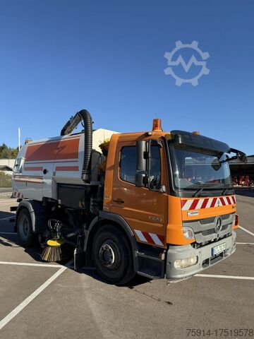 Operating hours: 3,908, First registration: 29.08.2014_____On mounting frame Atego 1324 4x #WDB9752622L829876Body number: 204654Engine number: SH32040618U2265113Dual sweeping machine Mercedes-Benz with Bucher Johnston superstructure. Gross volume: 6.5 cubic meters.Dirt collection on both sidesEquipment:- Special paint LA1 2603 deep orange- Water recycling- High-pressure washing system- Manual suction hose- Broom inclination adjustable from the cab- Manual water valves in the cabStorage location: 54595 Prüm