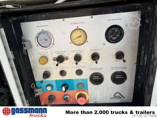 Body: Suction and pressure vehicle, Assmann Spülmaster 9m³ body, Uraca 716 R high-pressure pump, Demag Wittig compressor with extension piston, hydraulic tailgate, suction hose cassette 1 and 1/2", Uraca KD-716 R high-pressure pump (333 l/min.), Wittig Acqualine 1600 R vacuum pump (overhaul in 2024 for €1,000).
