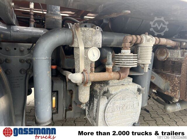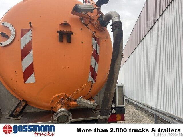 Wheelbase: 4200 mm Body: GÜNTER KÜLLER suction and rinsing trailer body, 14,000-liter steel tipping tank, high-pressure rinsing system, V-pump WITTIG RFW 200 R, hydraulic opening and locking tailgate, suction/pressure device, Vario speed controller, hose reel, hose boxes on left and right side, Disc brakes on VA and HA, Telligent automatic gearshift, CB radio, planetary axle, front axle VL 4/51DC-7.5 (BM 739.510), Telligent trailing axle, hydraulically steered, additional stabilizer, rear/trailing axle, axle ratio i = 4.833 (HL7), OM 501 LA.41 300kW Euro III, FHS with straight rear wall, driver's swing seat comfort, storage on engine tunnel high, starting aid, pre-equipment CB radio, hands-free telephone system, adaptable, transmission G 240-16/11.7-0.69, Telligent automatic gearshift II, main tank 400 l, steel, power take-off MB 123-10b, flange, H-speed.