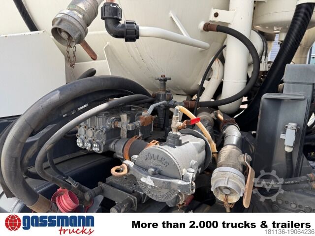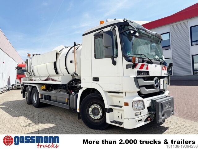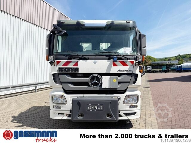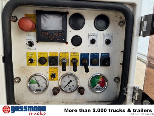 Wheelbase: 4500 mm Body: Müller suction and flushing truck, approx. 12 m³ (10,000 l sludge chamber/900 l water chamber), 9t front axle swap system, H6 13t rear axle with 440 crown gear, Telligent hydraulically steered trailing axle, Telligent braking system with ABS and ASR, disc brakes on front and rear axles, steel bumper, additional stabilizer on rear/trailing axle, parameterizable special module (PSM), traction control, preparation for toll collection, distribution cockpit, Mercedes PowerShift 2, on-board diagnostics 2, tank capacity: 400 l, transmission oil cooling, MB 124-10c MPA auxiliary drive, N/M speed, rear engine output for hydraulic pump.
