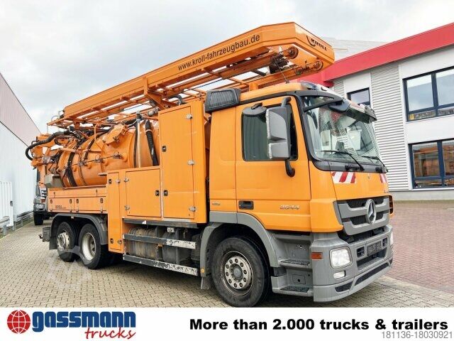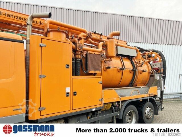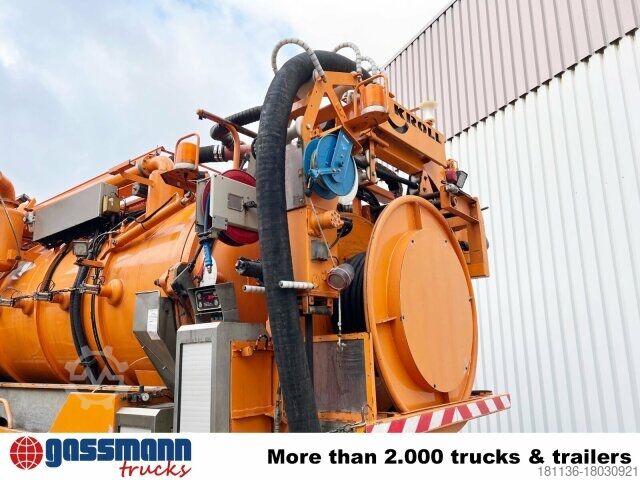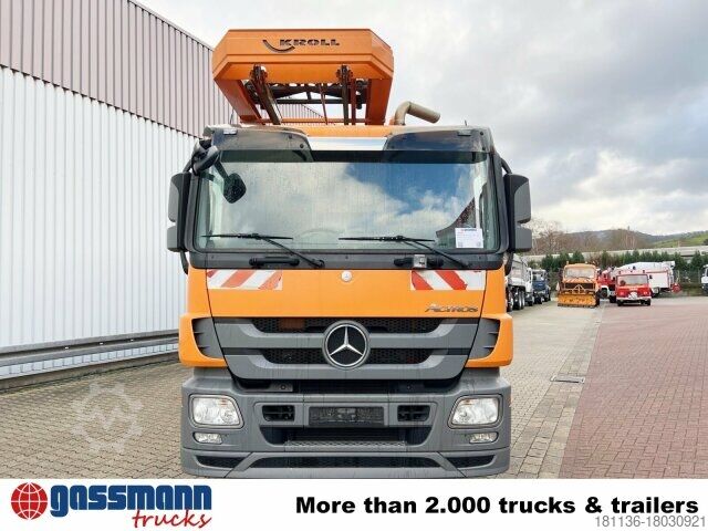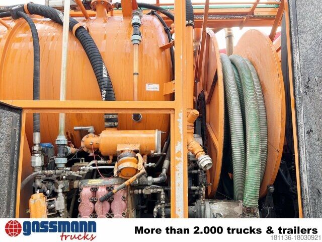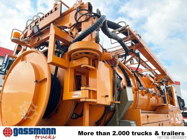 Wheelbase: 4200 mm Superstructure: Kroll suction and flushing superstructure approx. 12m³ (8500l sludge chamber/3500l fresh water) with radio control 9t front axle, axle load measuring device, rear axle H6 13t disk wheel 440, Telligent trailing axle hydraulically steered, disc brakes on front and rear axle, Telligent brake system with ABS and ASR, Front underride guard, additional stabilizer rear/trailing axle, sliding/lifting roof electric in glass version, starting aid, PSM, distributor cockpit, comfort locking system, Telligent gearshift II, pollen filter, reversing alarm, on-board diagnostics 2, transmission oil cooling, tank capacity: 300l, power take-off independent of transmission MB 1.4.