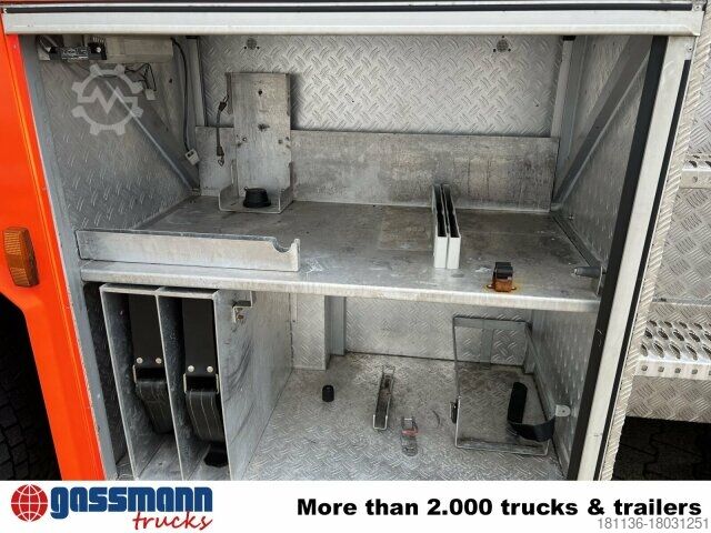 Wheelbase: 4350 mm Superstructure: Metz turntable ladder DLK 23-12 PLC III with rescue cage (rescue height approx. 30.75 m) Max. Righting angle: 75 degrees, Max. Basket load: 270kg, nominal rescue height: 23m, nominal outreach: 12m, outriggers: horizontal-vertical, outrigger width variable between 2,400mm and 4,500mm.