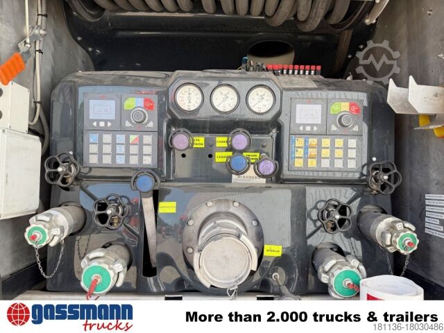 Wheelbase: 3860 mm Body: Rosenbauer tank fire engine TLF with 3000l water tank, foam tank, built-in pump & winch, 6t front axle, rear axle hypoid 11t ring gear 390, differential lock front and rear axle, ABS, switchable ABS, drum brakes on front and rear axle, brake system rupture protection, condensate monitoring for compressed air system, rear axle stabilizer, programmable special module (PSM), classic cockpit, pollen filter, reversing warning device, automatic transmission 5/3.49-0.75 Allison 3000PR with retarder, daytime running lights, high performance engine brake, power take-off operation with range selection lock, power take-off NA CS40-b/1.7, high position, flange. ACCESSORY INFORMATION WITHOUT WARRANTY, subject to changes, prior sale and errors!