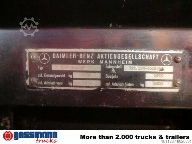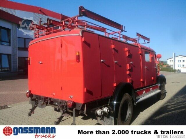 Wheelbase: 4200 mm Body: LF16 fire-fighting vehicle with MP16H 6-cylinder turbo diesel engine OM 312, single-stage centrifugal pump type Metz MP 16H, nominal flow rate of Q=1600l/min, nominal delivery head of H=80m WS, usable extinguishing water supply of 800 ltr. ACCESSORIES WITHOUT WARRANTY, subject to alterations, prior sale and errors excepted!