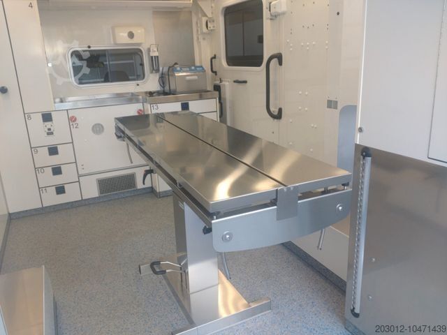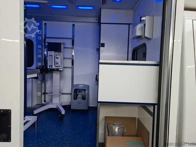 * Ceiling center, patient compartment floor, design of the doors, pull-out cabinets, compressor refrigerator, flaps, equipment holders, oxygen lines, lighting of the exterior storage compartments and interior lighting correspond to the standard EU RTW design.