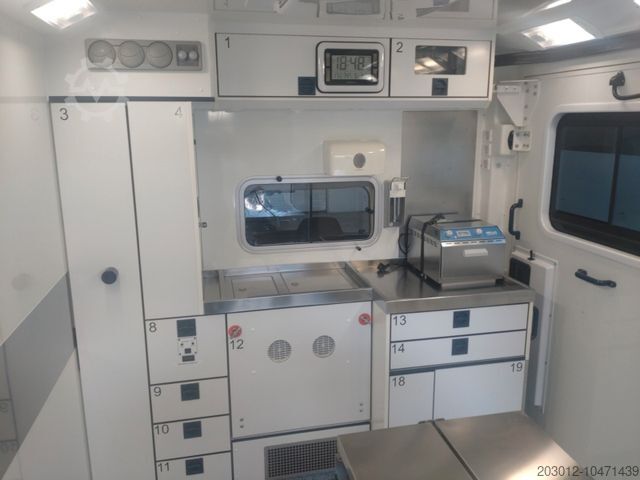 very very good condition ready for immediate use / vehicle is reconditioned no dents or scratches / stretcher possible for an extra charge / ABS + ASR, ESP / 2x airbag / electric exterior mirrors / electric windows / 2x battery 12 V 88 AH / engine preheating / auxiliary heating / power steering / stabilizer reinforced / air conditioning / parking climate / immobilizer / rear working light, 220V outside connection / fire extinguisher / center armrest / reversing camera / reading lamp.