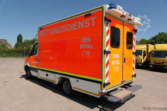 The Sprinter has an automatic transmission and has one previous owner. The vehicle's dimensions are 2,980 mm high, 2,150 mm wide, and 6,450 mm long. The permissible gross vehicle weight is 5,300 kg, making it a robust and versatile vehicle for emergency services.