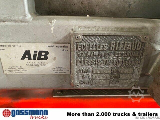 Wheelbase: 3600 mm Body: TURNING LADDER approx.: 32m RANGE and 75° INCLINE DREAMFUL ORIGINAL CONDITION, READY FOR IMMEDIATE USE, TURNING LADDER EAL25-RIFFAUD, WORKING BASKET max 170kg, NEW PRICE DM 400.000.- ACCESSORIES WITHOUT WARRANTY, subject to alterations, prior sale and errors excepted!