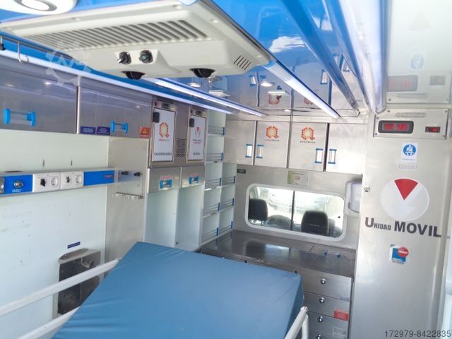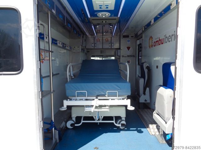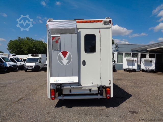 3+2 seater, power steering, driver airbag, 6-speed manual gearbox, rev counter, power steering, electric windows, on-board computer, air conditioning, central locking + radio remote control, air conditioning in the rear area, air connections, power connections (230v several times available), washbasin, refrigerator, hinged doors, side doors/left/right as storage space and as storage for oxygen bottle, without rust, roof spoiler, single tires, total length:6.170mm, Width:2.170mm, Height:2.900mm, Unladen weight: 3.460Kg, Payload approx.420Kg, wheelbase:4.325mm etc. Errors and omissions excepted.