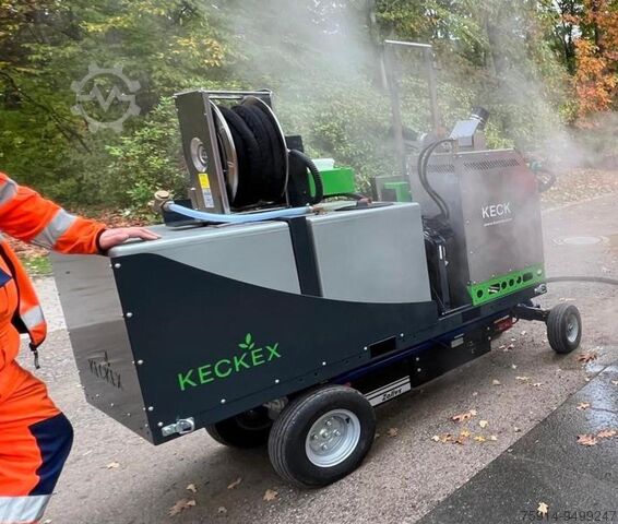 Operating hours:204_____KOMEX JESPI M13 Thermal weed remover The KOMEX JESPI M13 is a self-propelled and versatile thermal weed remover. A compact and handy solution for weed removal, chewing gum removal and gentle cleaning in smaller or hard-to-reach working areas. Ideal for narrow paths, narrow alleys, slopes up to 25 %, trailers with rampsAdvantages:- Environmentally friendly- Suitable for all surfaces- Easy handling- Versatile accessories- Targeted treatments- Very quiet application- Low water consumption- Low fuel consumption- Low service and maintenance costs- Can be used in all weathers- Modular designEquipment:- Hot water steam generator, 12 volt, 13 l/min, digital- JESPI L drive incl. battery and charger- Stacking unit Battery and charger- Forklift frame 2.0 x 0.7 m- Water tank 450 L, horizontal, traffic gray RAL 7042 KOMEX-JESPI- Set: Battery AGM 12V, 260Ah with charger 25A, 2 pcs. Plug SB 50 gray- Automatic hose reel, stainless steel for 15 m- 15 m HW hose with protective cover and abrasion protection- Bracket for surface device KFBH-50 incl. pin and chain- Hand-guided surface device, 50 cm- Lance holder 4-fold, straight, 2.0- Hand lance set 2-piece, gun with nozzle, cylinder lance and quick coupling- (4x) binding points- L x W x H: 240 x 80 x 130 cm- Dry weight: approx. 475 kg,Storage location:Halle Gondelsheim