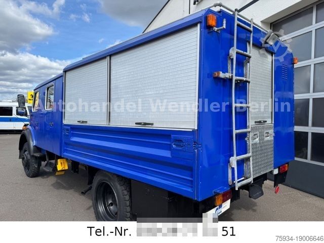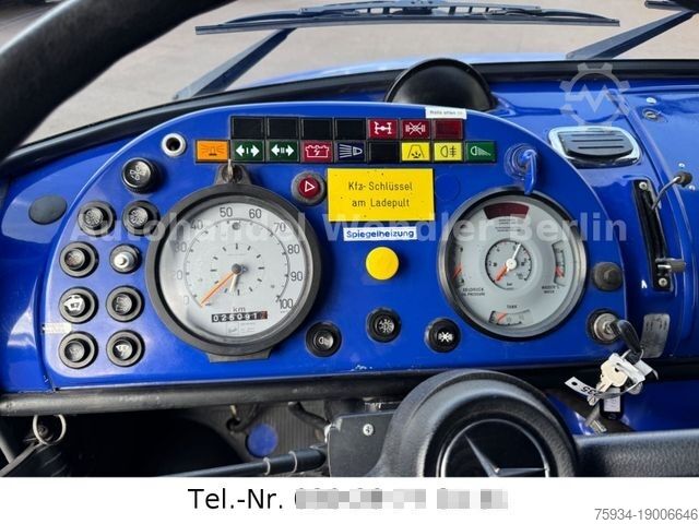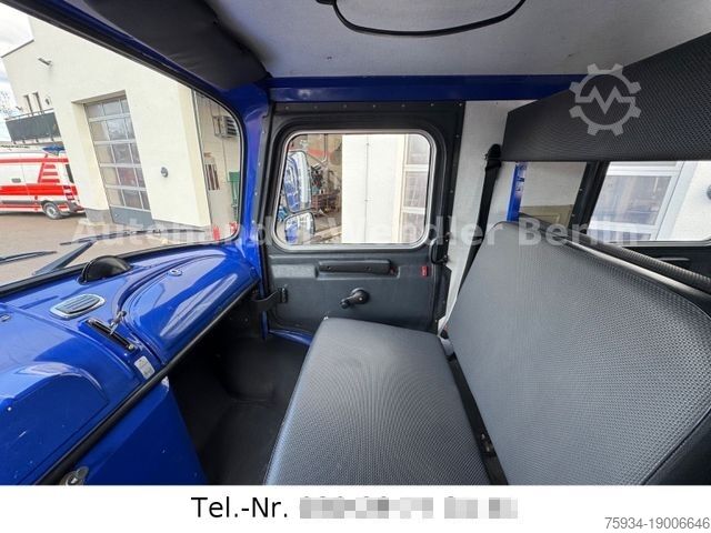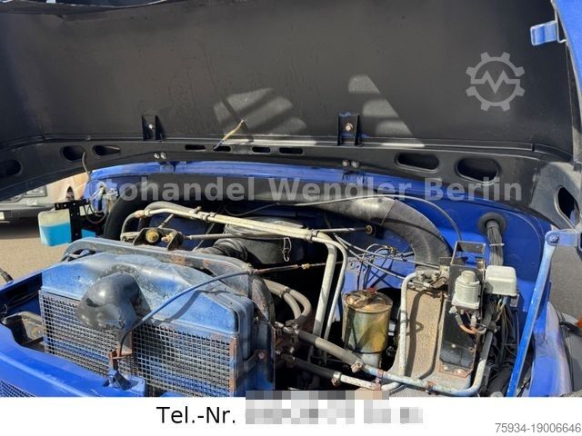 During the technical modification to truck type, the number of seats had to be reduced to 6 – but the remaining seats can be used as seats when stationary. Tow bar ring eye with braked towing capacity of 9,500 kg, transfer case with low-range gearing and 2 differential locks (center and rear), technically sound and roadworthy.