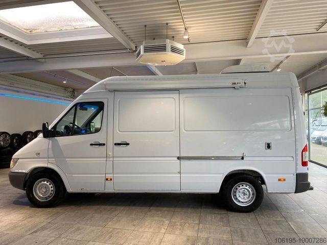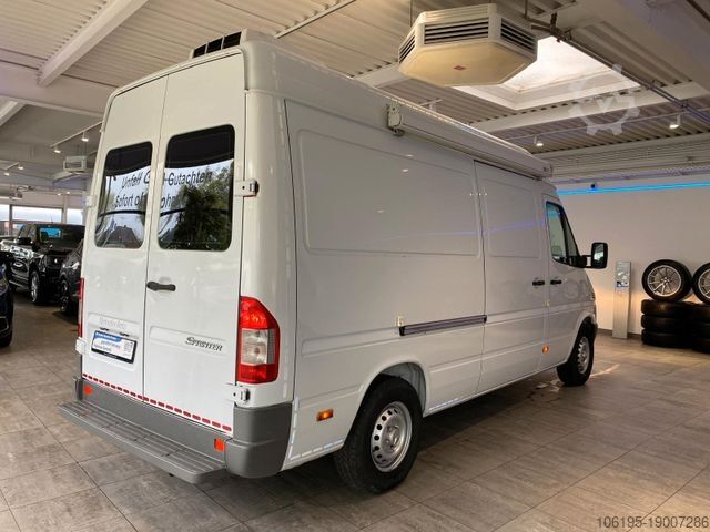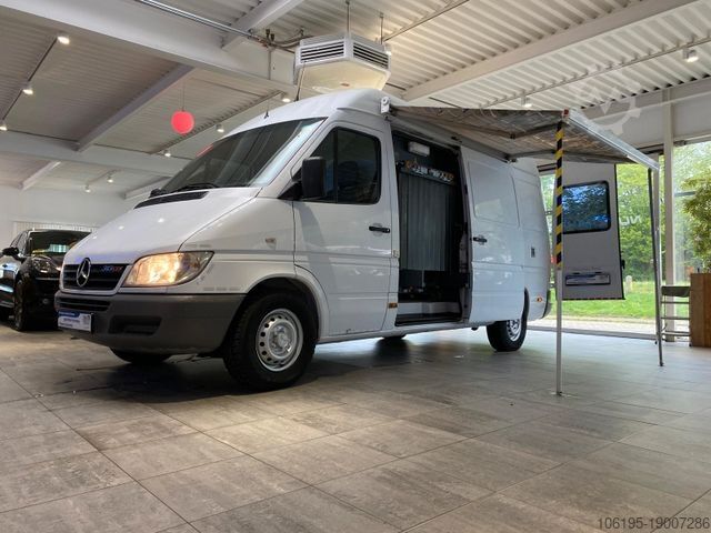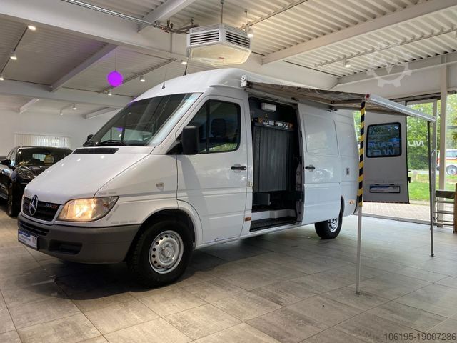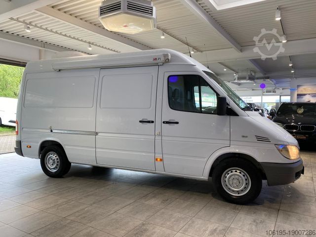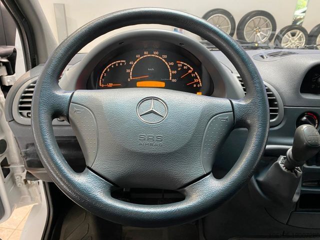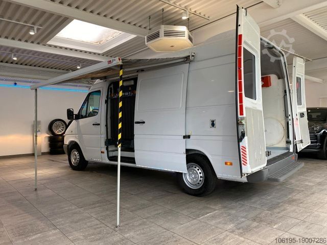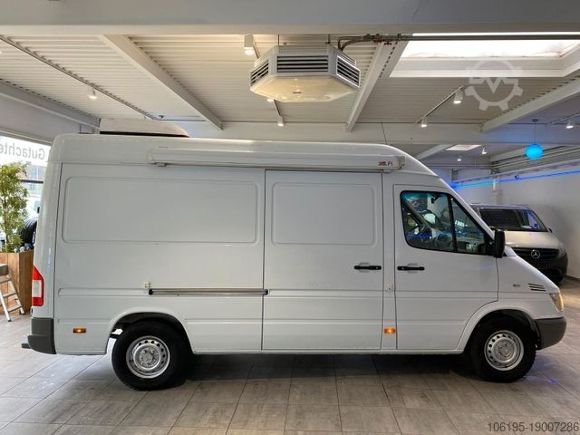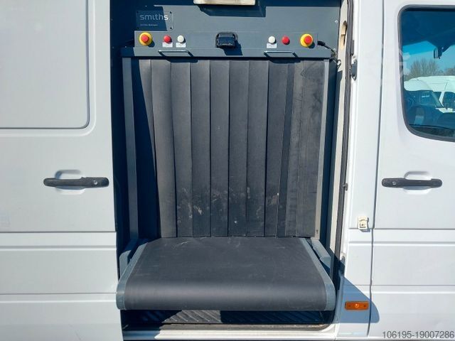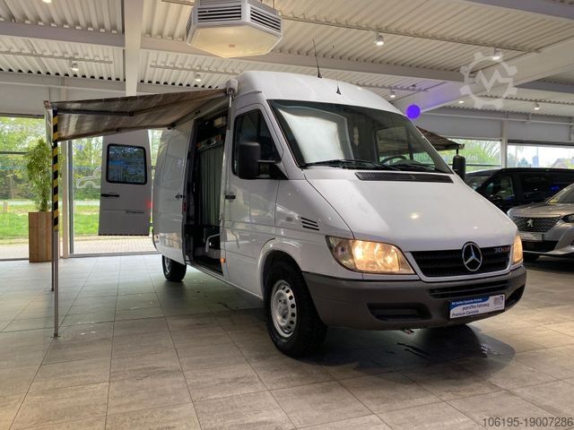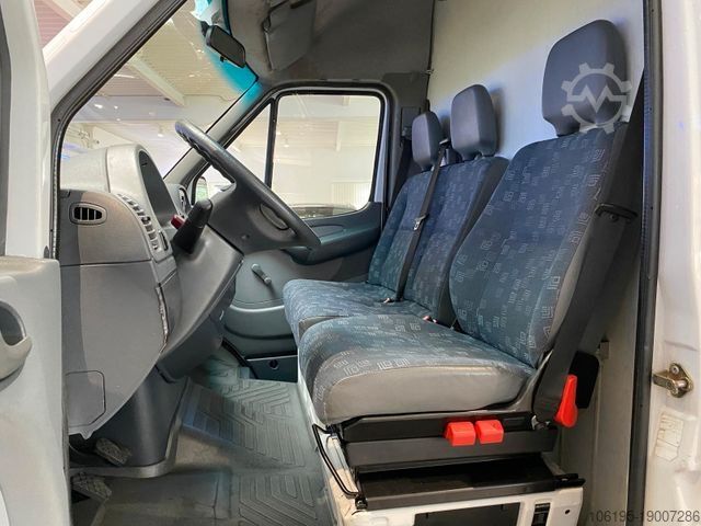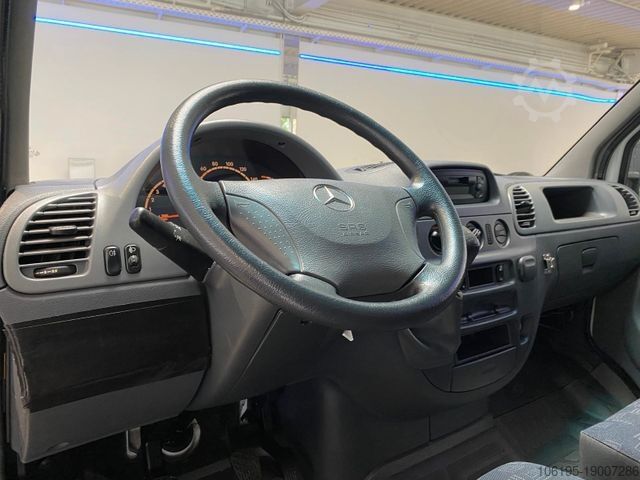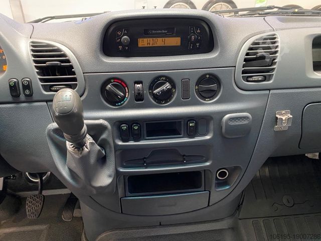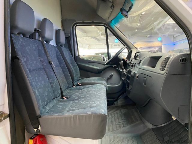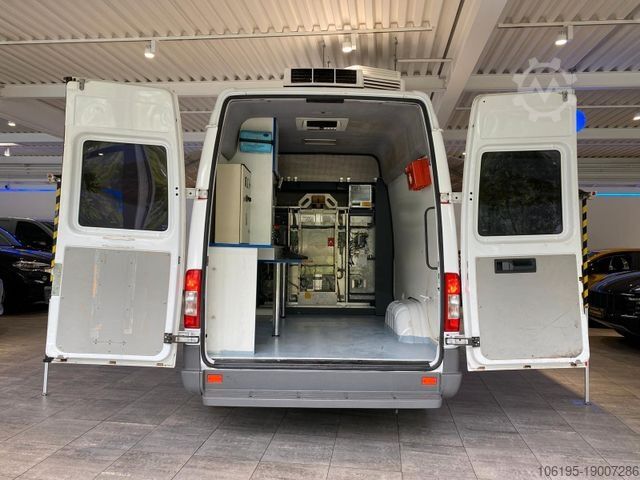 * Special equipment: Roof lining, rear door with glass (opening angle 180 degrees), wooden floor in the cargo area, load anchorage/lashing eyes, air filter: with maintenance indicator, sliding door to the left cargo/passenger compartment, rear stabilizer, rear door step, paneling in the cargo/engine compartment: hardboard, heat-insulating glass (windshield with band filter at the top), auxiliary heater. Additional equipment: Driver's side airbag, 88 Ah battery, braking system with ABS+ASR, tachometer, raised rear wing doors and high roof, 90 A generator, belt tensioners, glued rear window, body/structure: high-capacity box, fuel preheater (diesel), fuel tank: 76 L plastic main tank, continuous cargo compartment partition, engine: 2.2 L - 95 kW CDI CAT, wheelbase 3550 mm, sliding door to the right cargo/passenger compartment, seat cover/upholstery: fabric, seats in the driver's cab: Standard driver and passenger seats, reinforced front stabilizer, reinforced front axle, GVWR 3.50 t