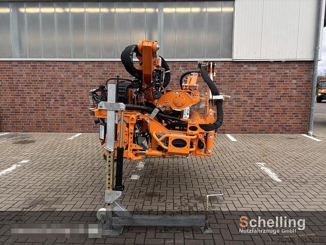 MULAG combination mower MKF 600 for attachment to Unimog mower combination MKF600 comprising: - Front boom mower MFK 500 - Edge strip mower MRF Basic device for one and two-man operation, designed for front attachment plate size 5 with the following equipment: Equipment front boom mower MFK 500 - for right-hand work - Boom swivel range: 190 degrees - hydraulically acting collision protection with damping of the boom system by hydraulic accumulator - hydraulic transverse displacement of the boom by 1300 mm (in combination operation) / 1800 mm (in solo operation) - floating position of the working equipment that can be switched on / off - quick-change device for working equipment - SAFETY STOP Electric blade shaft switching on / off from the control panel, including brake valve - Operating hour counter - Proportional control mlcontrol permanent hydraulics included - (Can bus technology) of the boom including dual cylinder actuation (several functions can be carried out simultaneously) - Boom relief control type AER, infinitely variable contact pressure adjustment via potentiometer, can be switched on/off - Operator information system with TFT color display, including system control and diagnostic aid - Multifunction lever mlbasic one-hand control unit with multifunction lever (ergonomically adapted to the right hand, 4 functions on one level. All functions can be controlled proportionally) - Combination control unit - Control of both devices via a multi-function control lever - Oil cooling system included with electrical temperature monitoring - Device drive front PTO - Hydraulic pump for drive 1st work device 62l / 340 bar - Hydraulic pump for drive 2nd work device 50l / 280 bar - Oil filling Panolin HLP Synth fully synthetic, quickly biodegradable - Boom system telescopic boom hydraulically adjustable, to increase the reach by 1,000 mm - Reach 6.50 m from the center of the vehicle in combination operation - Reach 7.00 m from the center of the vehicle in solo operation - 2-way electro-hydraulic switch valve switchable from the control unit (additional hydraulic double functions) - Hydraulic rotation device for work devices, swivel range 230° switchable from the control unit. Integrated on the boom side, including quick-change plate. - Hydraulic couplings quick coupling kit for flat-sealing quick couplings on the mower - Cable set ES6 connection front Unimog Connection of the control unit via the universal electrical interface ES6 of the Unimog - Hydraulic parking support Including 2 pieces, height adjustable - LED work lights 2 pieces, mounted on the boom - High pressure water hose routing on the boom Edge strip mower MRF 350 Consists of the following configuration: Edge strip mower MRF 350 - for working on the right - Reach 3.50 m from the center of the vehicle - Hydraulic transverse adjustment of the edge strip mower by 1000 mm (in combination operation) - SAFETY STOP Electric blade shaft on/off from the control unit, including brake valve (the run-on time of the blade shaft is limited to approx. 4 seconds) - Operating hour counter - Automatic touch: Control of the mowing head around obstacles. The mowing speed adjustment of the evasive movement can be continuously adjusted by the driver on the control panel. - One-hand control unit with holder in the Unimog verge mower head RMK 1200 - Working width: 1200 mm, cutting thickness: max. 10 mm - Blade MS-R - Blade shaft speed: approx. 3000 rpm - Sensor arm standard mower head MK 1200 plus -