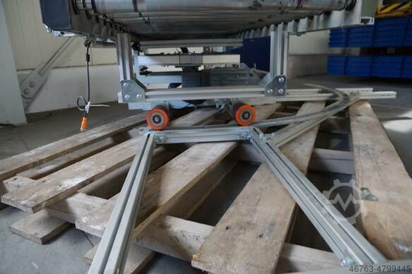 Мощный роликовый конвейер, который может поворачиваться под прямым углом (90 градусов) с помощью моторного привода - подержанный -