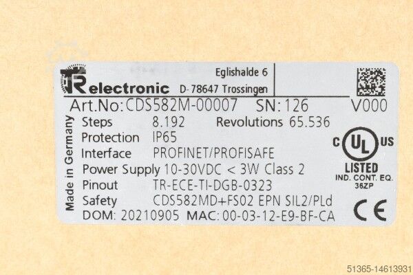 CDS582M-00007, безопасный SIL/PL, абсолютный энкодер TR