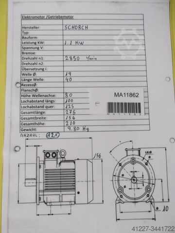 электродвигатель 1,1 кВт 2850 об/мин Schorch